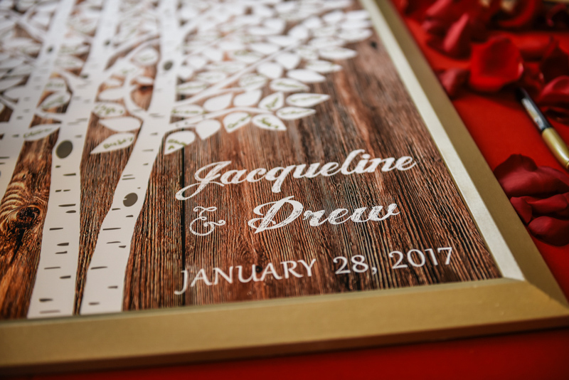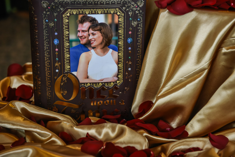 Jacqueline looked stunning in her Allure Bridal gown as she walked down the aisle to her groom, Drew, at Corpus Christi Catholic Church in Celebration, FL. The celebration continued at Mystic Dunes Resort and Golf Club. Guests were greeted at the entrance which Once Upon a Time book next to a gold apple adorn tree to write their well wishes in. Their theme was also seen at the cake table which had a statue of Snow White and her Prince next to a wishing well.