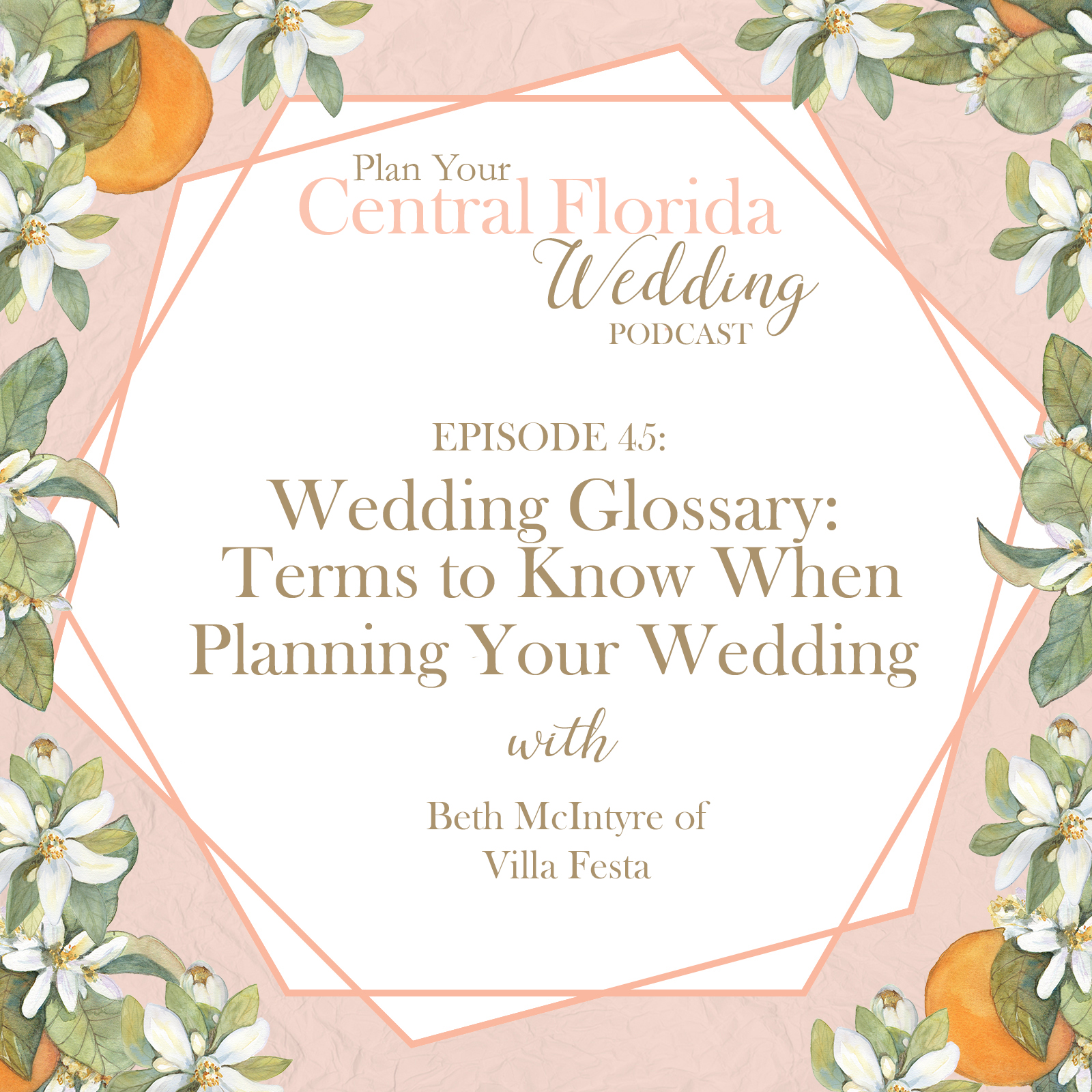There is a lot that goes into planning a wedding and you may not be familiar with some of the wedding terms that you will hear along the way. In this episode, I’ll be talking with Beth McIntyre about some of the common wedding terms and what they mean. Beth is the owner of Villa Festa, a wedding venue that will be opening at the end of summer 2022 and will specialize in weekend weddings. She is also the owner of Your Favorite Day a wedding planning firm here in the Central Florida area.
